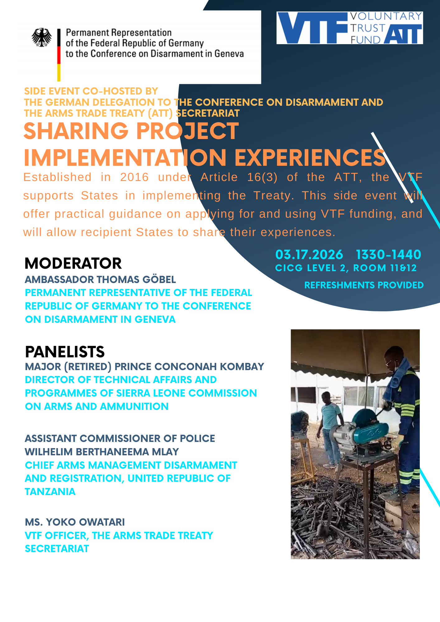 Any State or organization that wishes/plans to hold a virtual side event or webinar during the week of 16 – 19 March 2026 is welcome to inform the ATT Secretariat of the event by sending an email to info@thearmstradetreaty.org, and we will post the information on the webpage for the Working Group meetings for all stakeholders to consult.